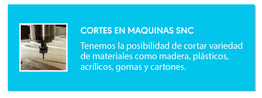 Trabajamos con pantógra-fos láser y router CNC que nos permiten trabajar en una amplia variedad de superficies como plásticos, acrílicos, madera, acero inoxidable, polyfan, telas, cueros, gomas, grabado de vidrio y cristalería.